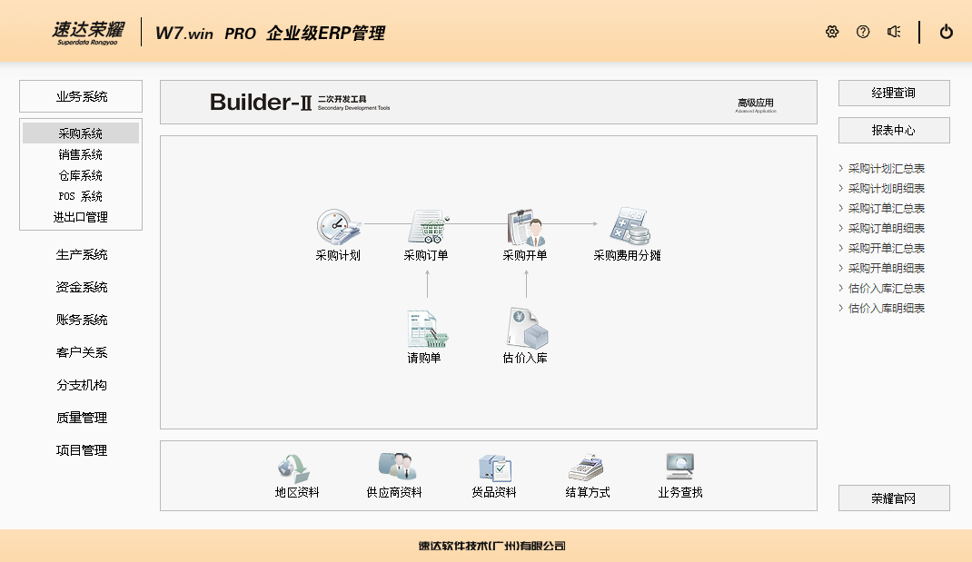 《W7.win_PRO》 ERP管理系统是一套完整的企业资源管理软件, 软件支持云部署和桌面服务器部署及APP部署,大大提升了应用效率和安全性。 优越的技术架构支持系统云应用、桌面应用、APP 应用,数据实时同步,安全、稳定、高效、易维护。实现异地多机构、多店面、多仓库等远程应用。