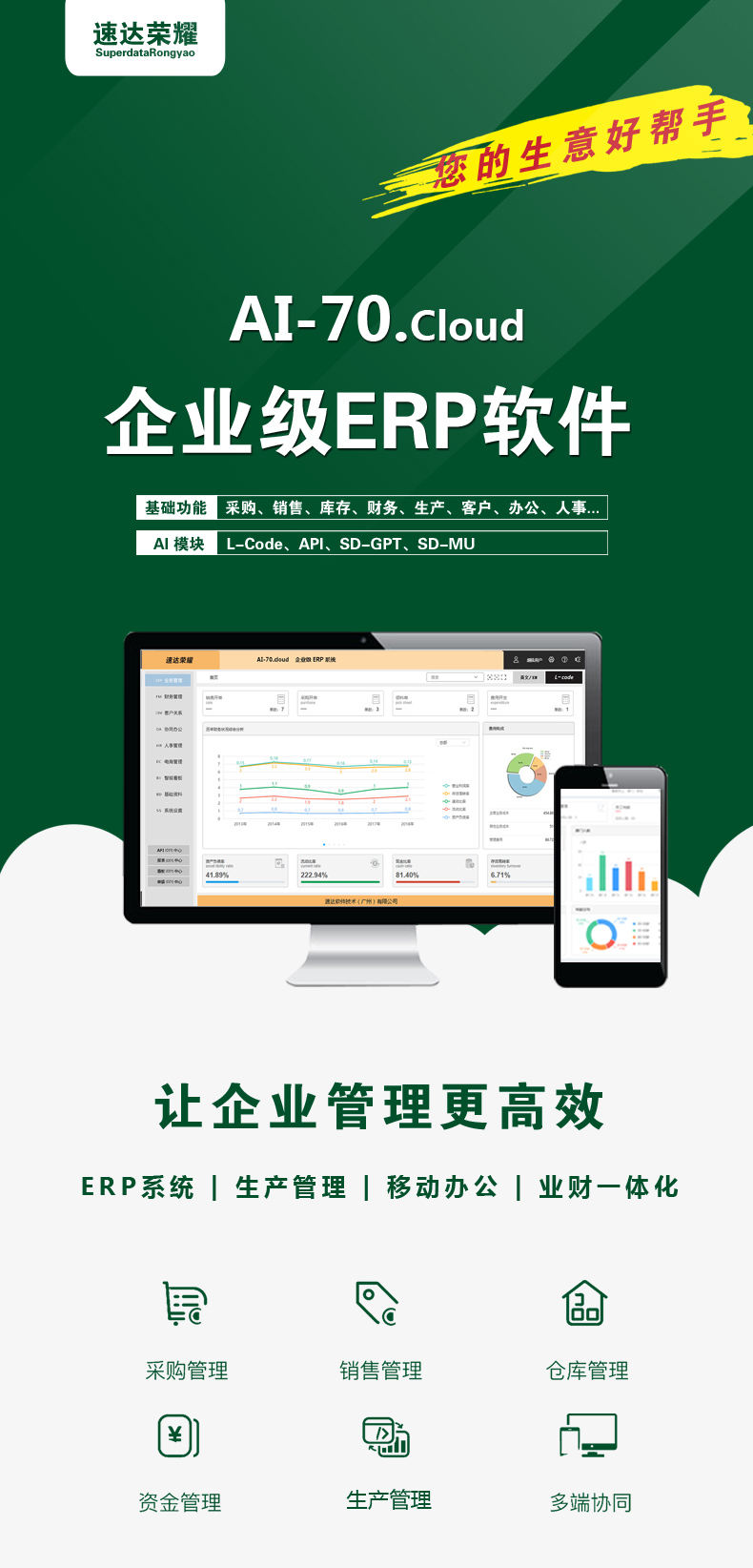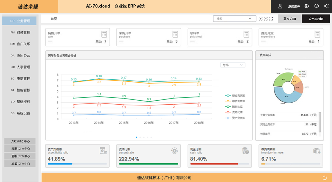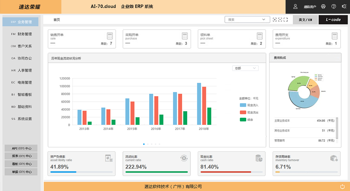 速达荣耀 AI-70.Cloud XP ERP管理(AI)系统是速达软件公司的高端应用解决方案,完整涵盖中小企业管理应用。深度引入 AI 智能技术和全新企业管理解决方案思想。智能 AI 的引入高效易行的帮助企业个性化应用,辅助智能思想模型的实现,低代码编程 、多语言应用、数据接口开放、GPT 智能模型都是全新的管理软件核心思想,为用户带来便捷的应用和科学的管理。支持桌面部署、云部署相互兼容。